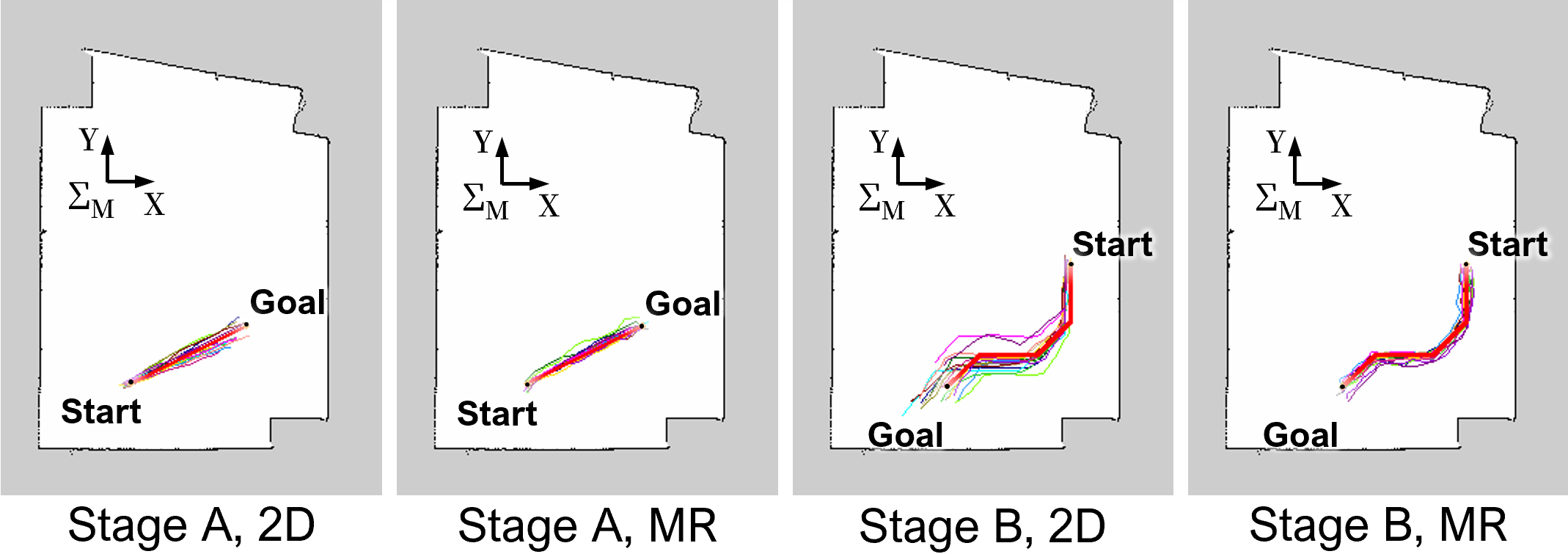 These results support direct path drawing in MR as a way to encode human spatial intention for mobile robot navigation, with improved fidelity and usability despite longer interaction time in some cases.