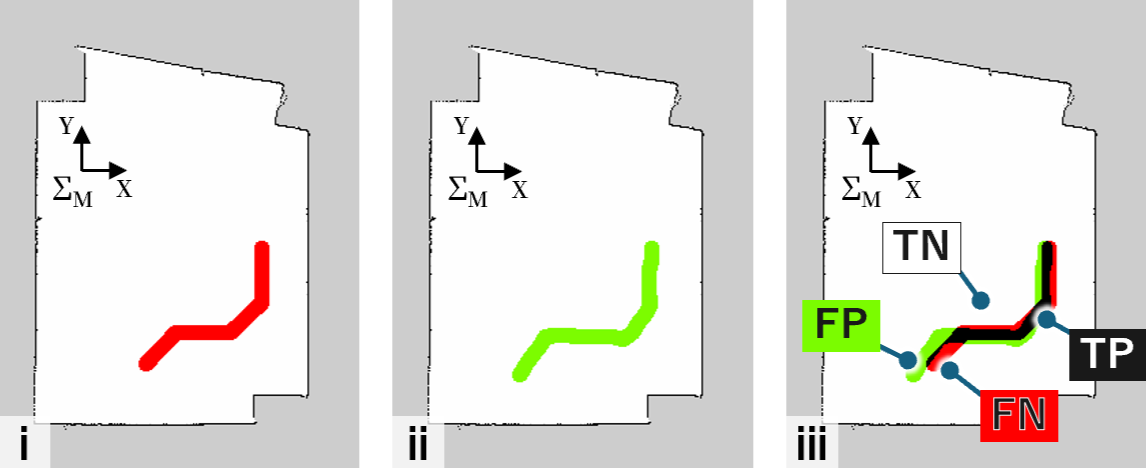 Pixel-wise comparison: TP / FP / FN / TN between GT and drawn region.