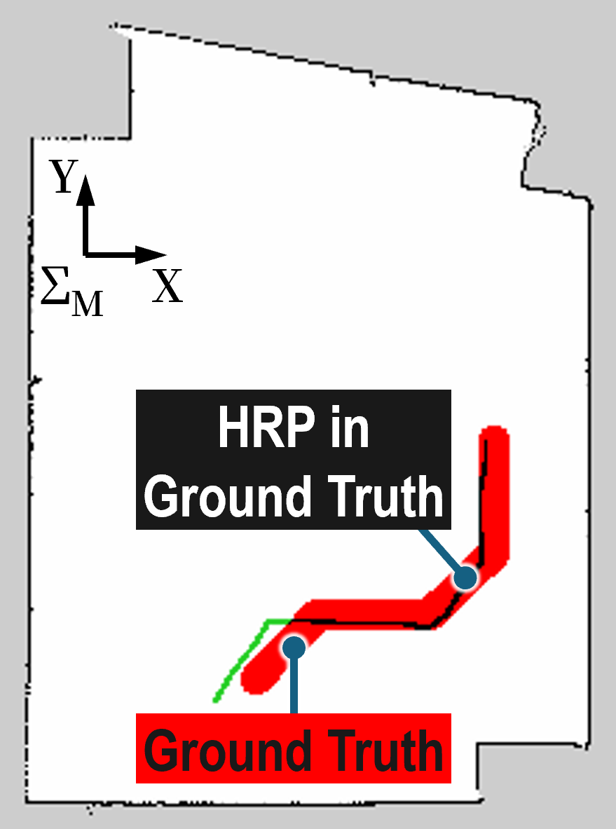 Example HRP in HoloLens 2 (yellow pin: goal) and the corresponding global path in ROS 2.